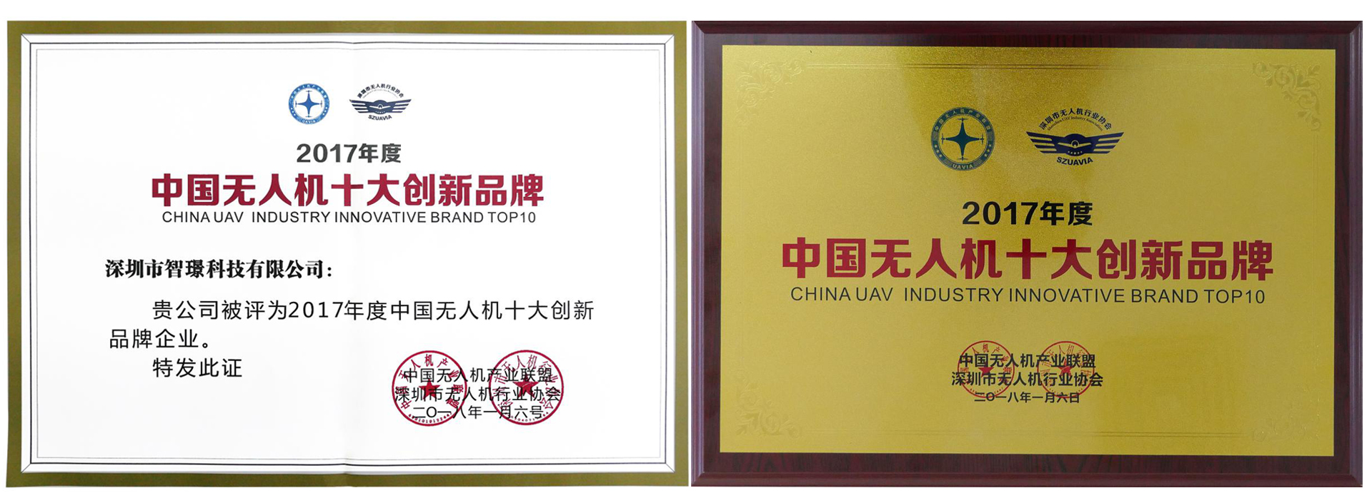 智璟科技榮獲2017年度中國無人機十大創(chuàng)新品牌