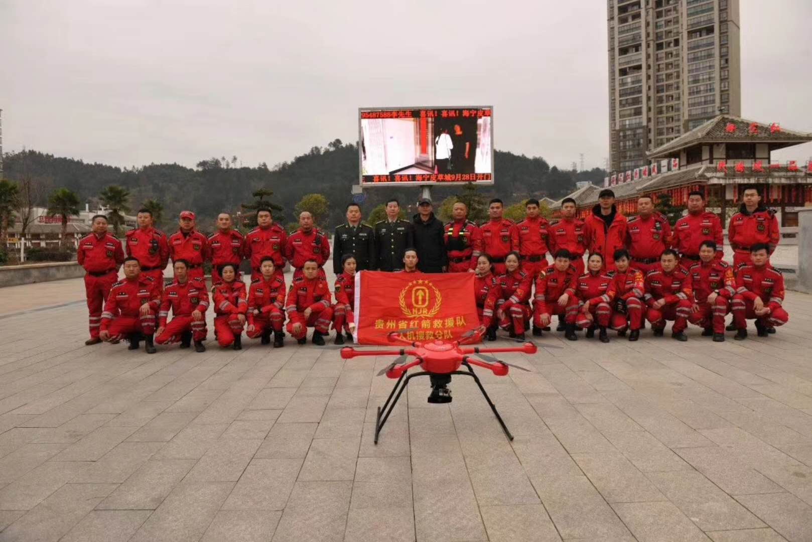 演練圓滿成功后貴州紅箭救援隊(duì)與智璟科技T60V2救援無人機(jī)合影