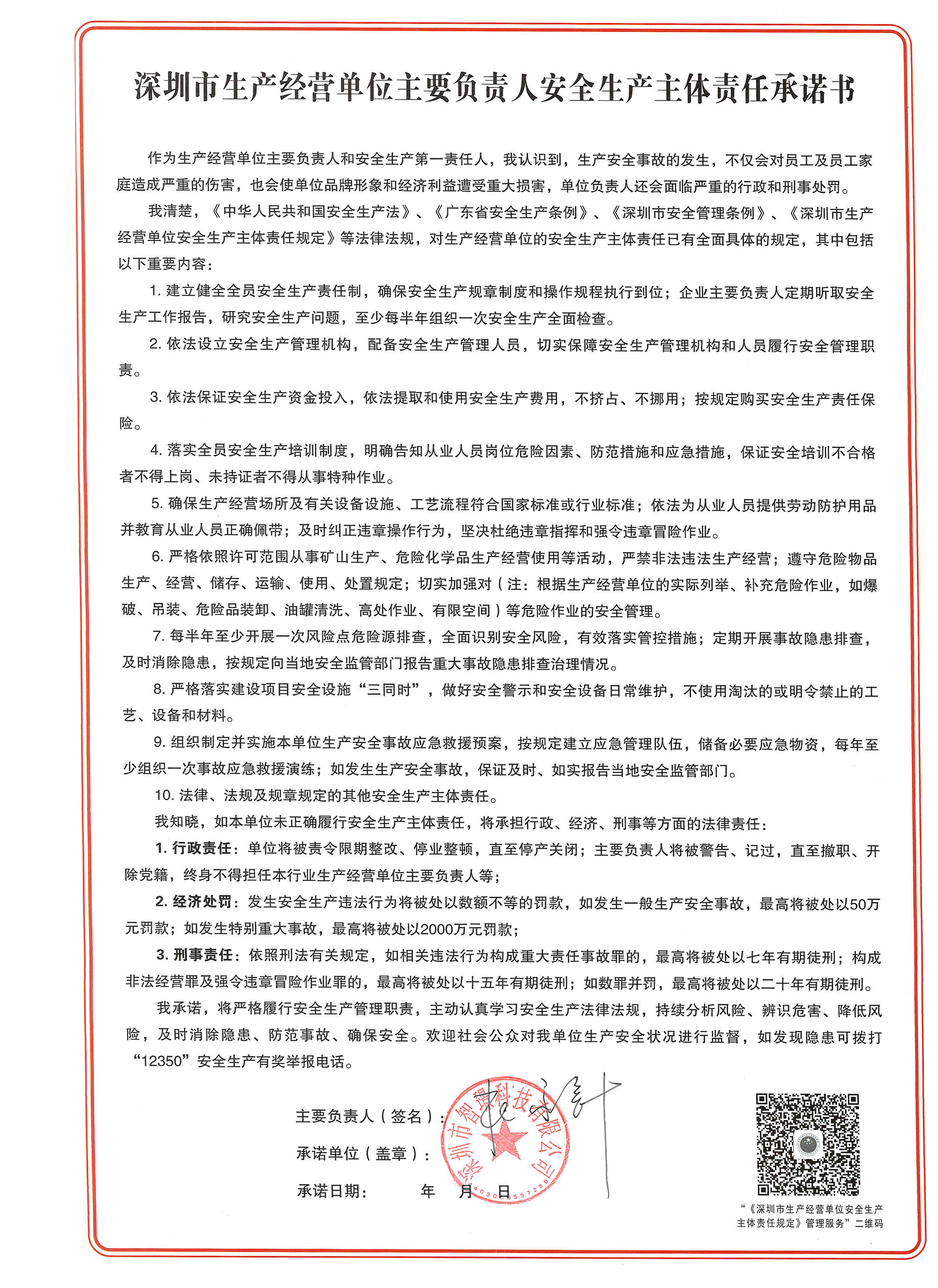 智璟科技簽署《深圳市生產(chǎn)經(jīng)營(yíng)單位主要負(fù)責(zé)人安全生產(chǎn)主體責(zé)任承諾書(shū)》