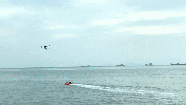 同時(shí)也結(jié)合無(wú)人機(jī)的高清視頻回傳,發(fā)現(xiàn)并到達(dá)落水者位置,實(shí)施精準(zhǔn)救援