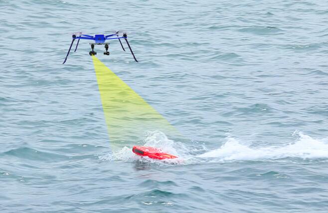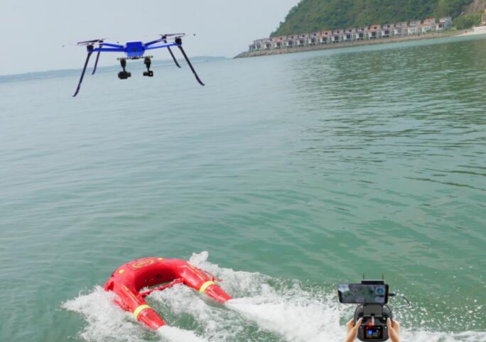 2.空海一體化聯(lián)動,水上機(jī)器人可自動跟隨隨無人機(jī)到達(dá)落水點(diǎn);