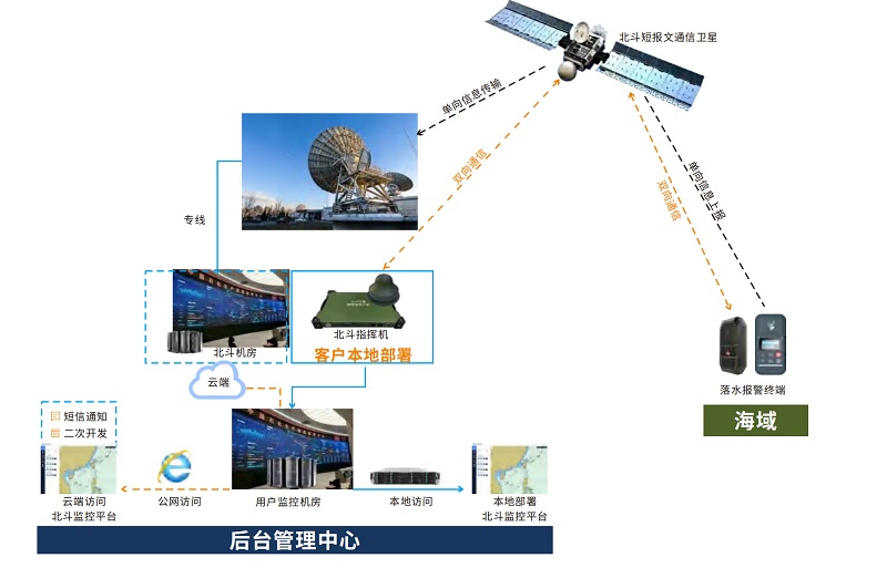 海洋水上作業(yè)中,人員落水問題時有發(fā)生,過去救援人員很難獲取落水人員呼救信息、確定落水人員位置、事故發(fā)生時間以及事態(tài)嚴重程度,以給予最及時的救援,管理人員都對此無計可施,缺乏有效技術手段是目前海上事故救援效率低、救援難度高的重要原因。本方案基于北斗RDSS導航衛(wèi)星實時進行循環(huán)定位、通信操作,通過衛(wèi)星轉發(fā)落水人員的準確坐標、時間等信息實時地告知教援中心,從而顯著提高海上救援的響應速度和搜救成功率。