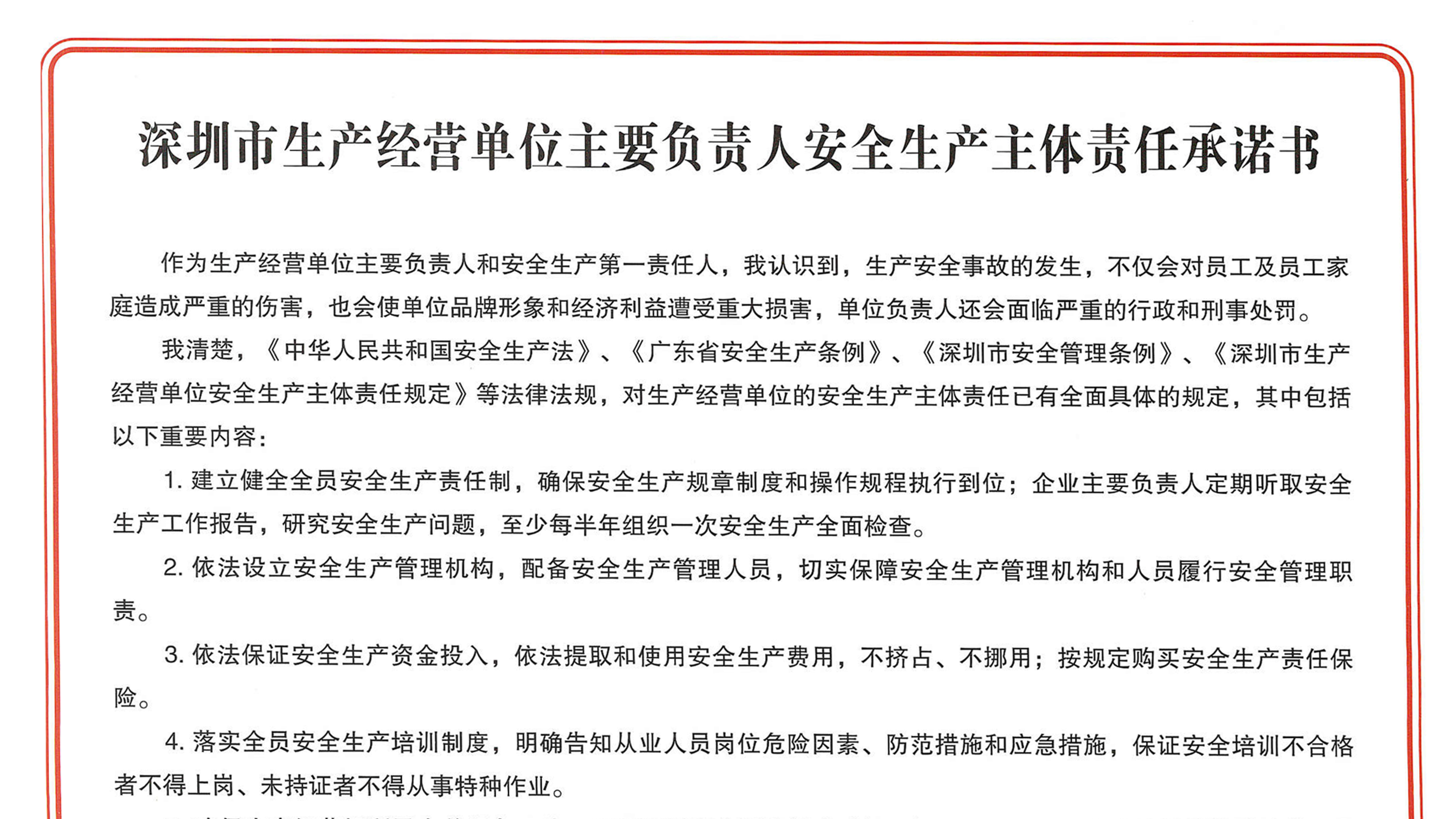 智璟科技簽署《深圳市生產(chǎn)經(jīng)營(yíng)單位主要負(fù)責(zé)人安全生產(chǎn)主體責(zé)任承諾書》