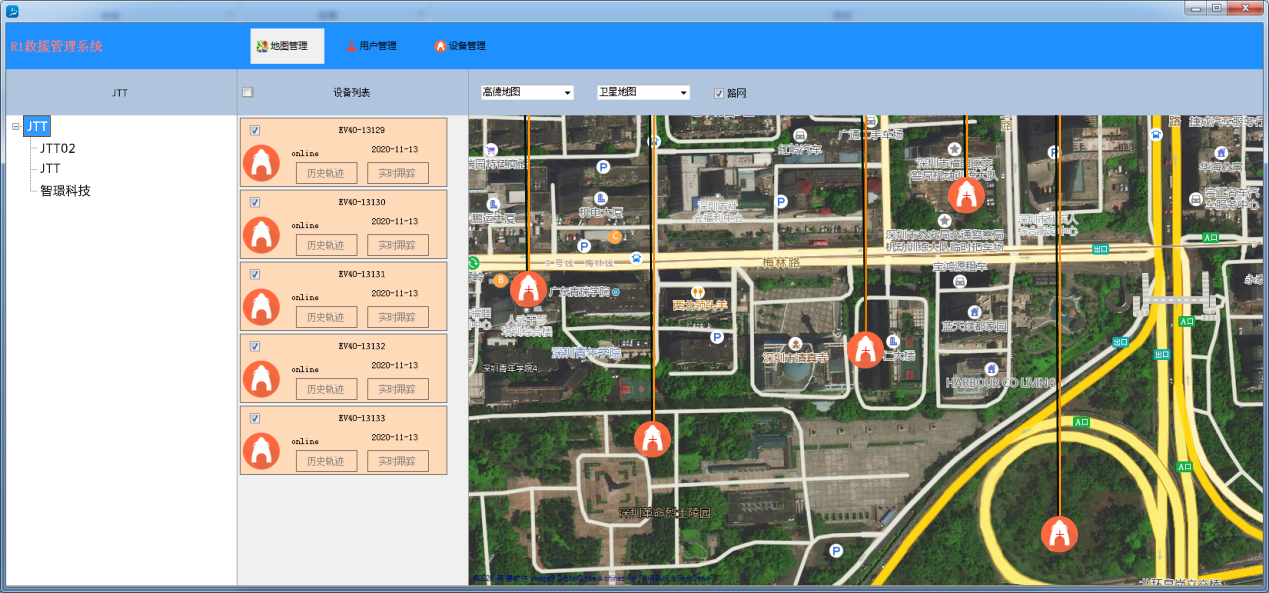 可根據(jù)時間段查看設(shè)備的歷史軌跡,或者實時跟蹤設(shè)備的軌跡