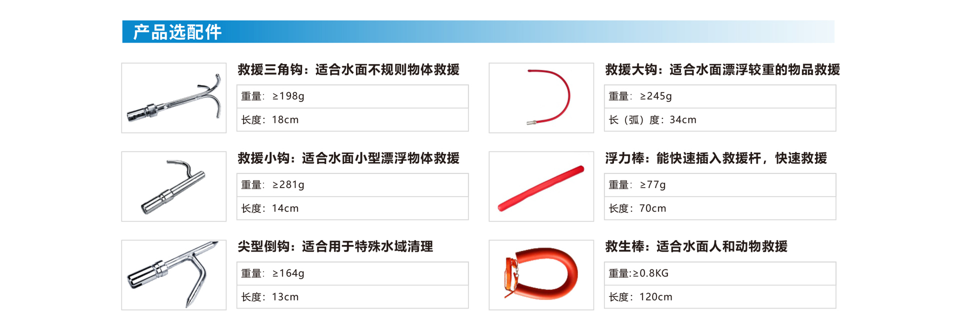 · 救援桿(18m):在岸上或船上開展遠(yuǎn)距離安全施救,也可用來打撈漂浮物時(shí)使用