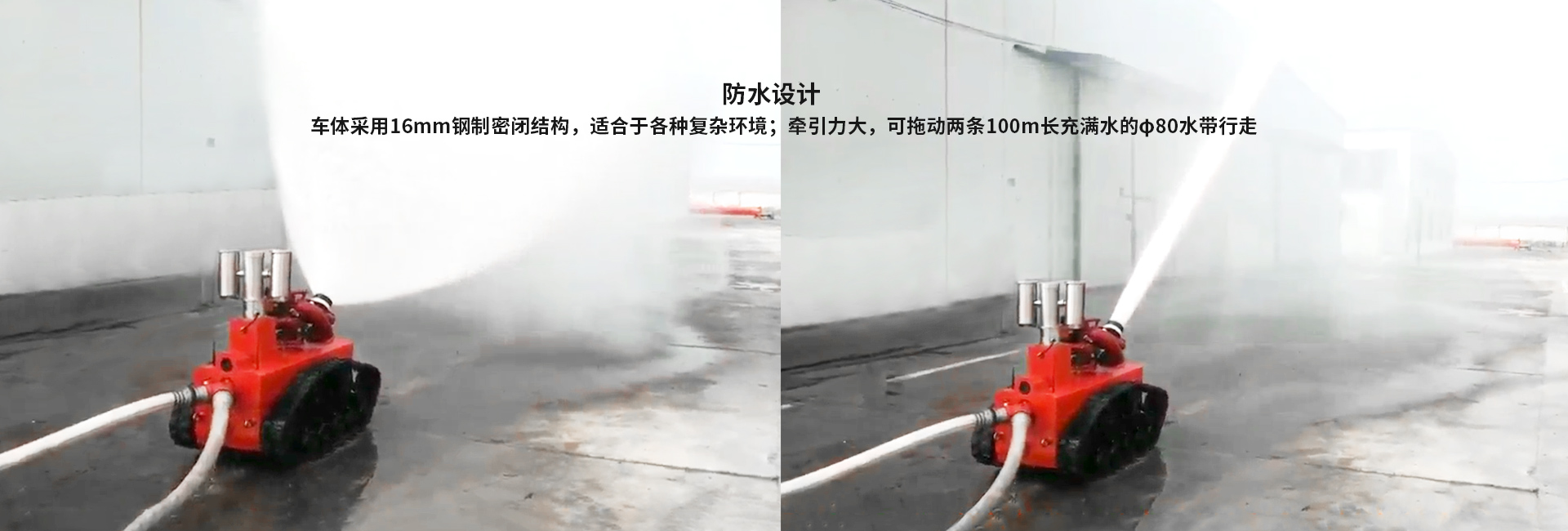 · 牽引力大:可拖動兩條100m長充滿水的φ80水帶行走;