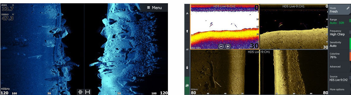 通過聲吶,釣魚者可以確定魚群的位置和深度,幫助他們選擇最佳的釣點(diǎn),節(jié)約時(shí)間和精力。此外,聲吶還可以幫助釣魚者避免淺灘或者水下障礙物,確保他們的船只和漁具的安全。下圖為Active lmaging3合1聲納應(yīng)用截圖。